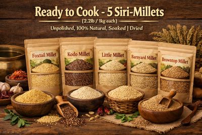 To cook Siri millets(any one siri millet) first clean the millets with water 1–2 times. Soak them for a minimum of 6–8 hours, using a ratio of 1 glass of millet to 2½ glasses of water. After soaking, boil the millets in the same soaked water, avoiding the use of a pressure cooker. Cook on a medium flame for about 15 minutes. While boiling, add a pinch of salt and 1–2 drops of oil to keep the grains separate, fluffy, and prevent clumping. That’s it—your Siri millets are ready. Regular consumption of Siri millets, when cooked the right way, can greatly benefit your health
